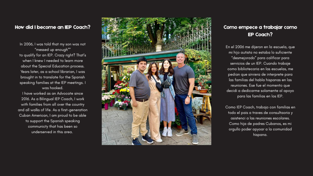 Nota – No soy una abogada y no proporciono asesoramiento o servicios legales. Toda información que proveo es solo informe general. Mi objetivo es ofrecer información para ayudarle a entender el proceso de educación especial, los procedimientos, y para dentro de estas pautas para su hijo. Aunque espero ayudarle a navegar el proceso de los planes IEP ó 504, no puedo garantizar ningún resultado especifico. Todas las últimas decisiones son suyas.